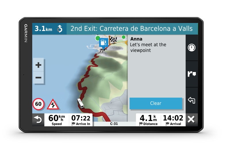 Ha párosítod a Garmin Drive alkalmazással, láthatod a szöveges üzeneteket és egyéb értesítéseket2 a telefonodról a navigátor képernyőjén.