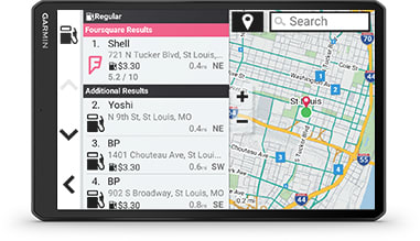 Kapcsolódj a Garmin Drive™ alkalmazáshoz, hogy valós idejű üzemanyagár-frissítéseket kapj az útvonalad mentén.