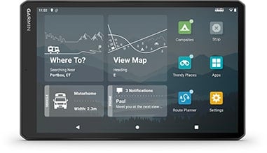 A Camper 1095 navigáció figyelembe veszi a lakóautód méretét és tömegét, majd ajánlott útvonalat keres1. Több jármű vagy lakókocsi profilját is elmentheted.