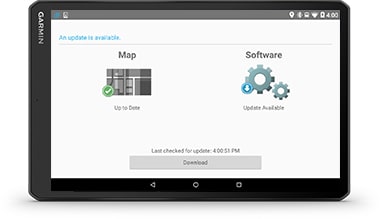A beépített Wi‑Fi® kapcsolódás megkönnyíti a térképek és a szoftver naprakészen tartását számítógép nélkül. A képernyőn megjelenő jelzések mutatják, ha új frissítések érhetők el.