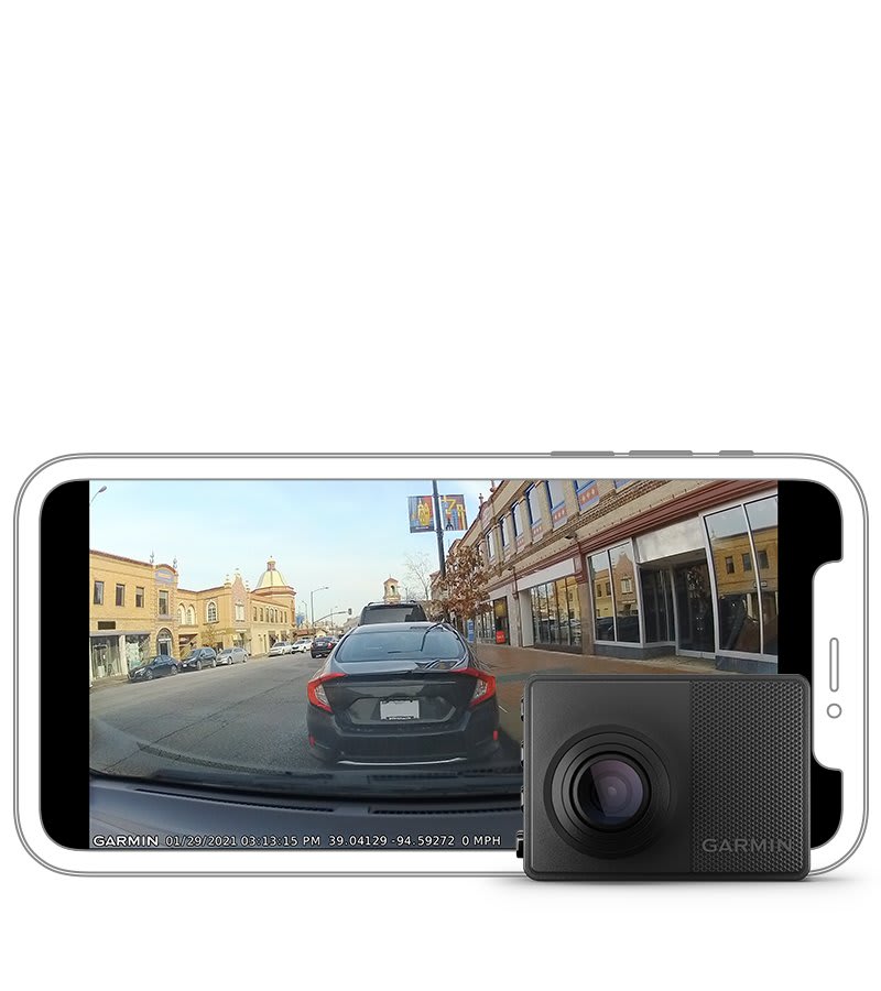 Használja a Garmin Drive alkalmazást kompatibilis okostelefonján, hogy távolról hozzáférjen a kamerához élő nézet megtekintéséhez bárhonnan, amikor távol van az autójától. Ez aktív Wi‑Fi kapcsolatot, folyamatos áramellátást és Vault-előfizetést igényel; egyes járművek esetén a Constant Power Cable (külön megvásárolható) használata szükséges lehet.