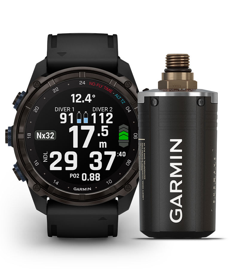 Minden lélegzetet, minden palackot, minden társadat a merülésen — kövesd mindet a csuklódon, amikor párosítod a Descent T2 adóvevőt a kompatibilis, levegőintegrált Descent™ búvárkomputereddel1. A továbbfejlesztett SubWave™ szonártechnológia lehetővé teszi, hogy víz alatt akár 8 palackot is figyelj — megjelenítve a levegőnyomást, a mélységet, a fogyasztási rátát és a hátralévő levegőidőt — különböző merülési típusokhoz. Ráadásul előre formázott üzenetekkel is kommunikálhatsz a hálózatba kötött társakkal, akik Descent™ Mk3i búvárkomputert viselnek.