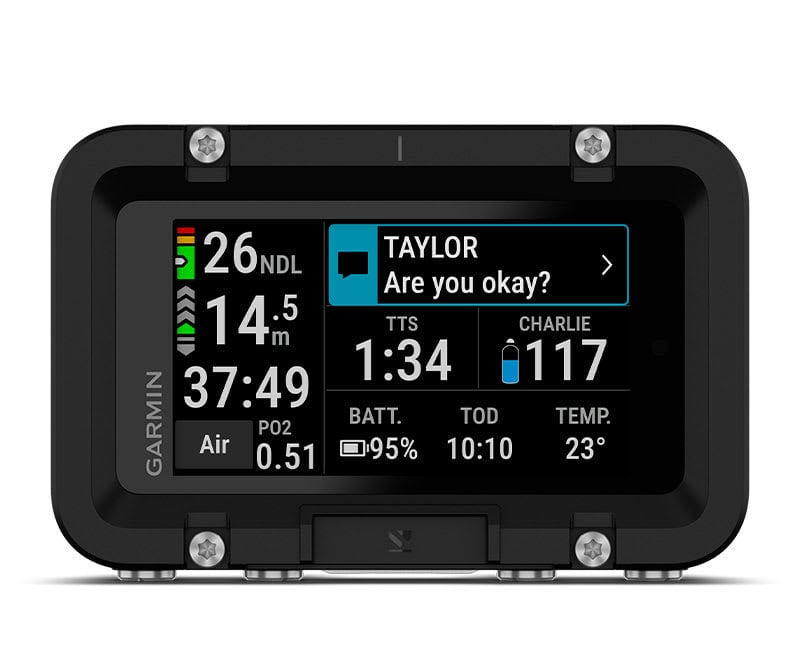 Előre beállított búvár-búvár üzeneteket válthatsz akár 30 méterre, továbbá figyelheted a palacknyomást, a mélységet és a távolságot akár 8 búvár esetén 10 méteren belül².