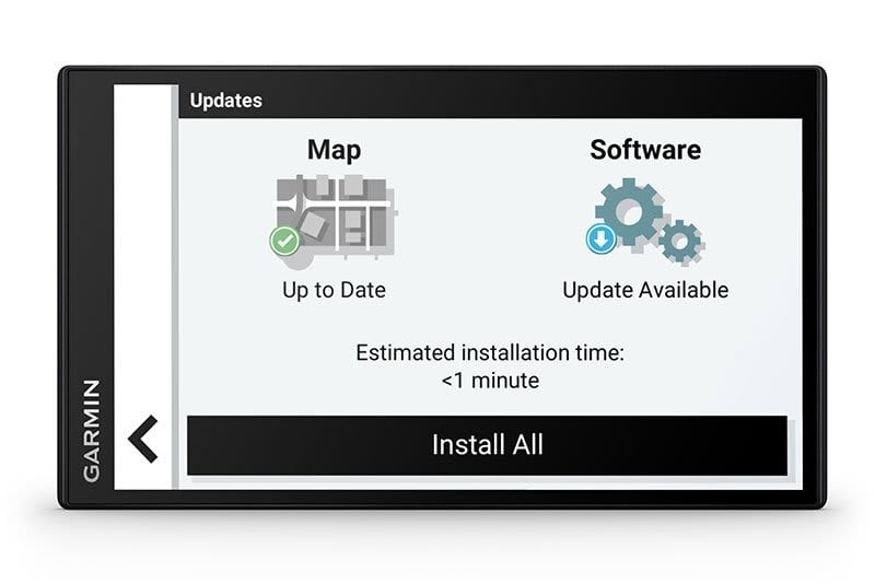 A beépített Wi‑Fi® csatlakozás megkönnyíti a térképek és a szoftver naprakészen tartását számítógép használata nélkül. A képernyőn megjelenő jelzések mutatják, mikor érhetők el új frissítések.