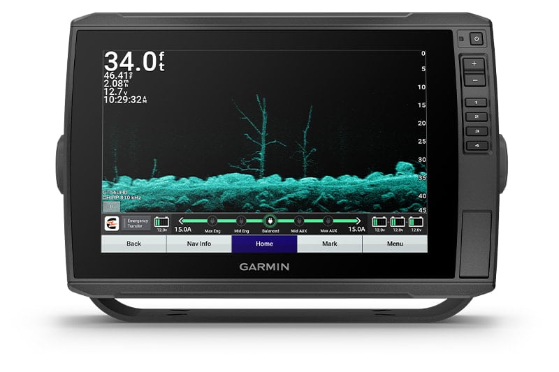 A Power-Pole CHARGE Marine Power Manager integrálódik a kompatibilis Garmin térképezőkkel, hogy segítsen hosszabb ideig és erősebben fenntartani az akkumulátor energiáját a vízen. Útközben töltheted az akkumulátorokat, figyelheted az energiafelhasználást, kiválaszthatod, hová osztódjon az energia, vezérelheted a vészindításokat, és akár átválthatsz az akkumulátor bankok között — mindezt a térképeződ kijelzőjén keresztül.