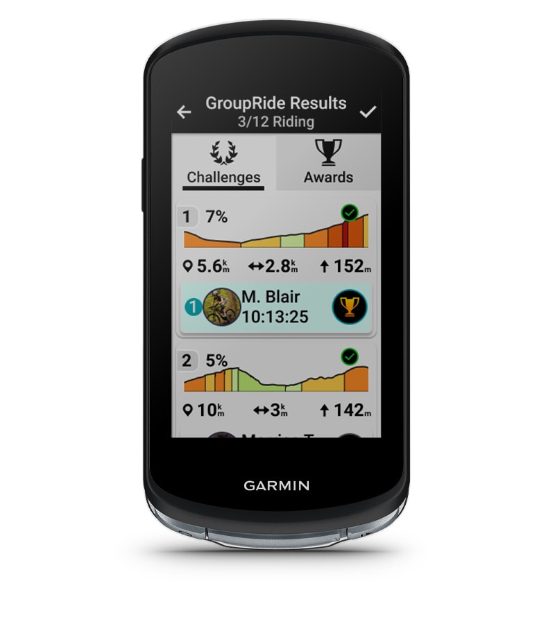 Maradj kapcsolatban csoportos tekerések közben4 az úton belüli üzenetküldés és élő helymegosztás segítségével; emellett most már eseményérzékelési értesítéseket is kaphatsz6. Továbbá fokozd a szórakozást és a versenyt az út közbeni ranglistákkal a mászásokhoz és az utólagos díjazásokkal.