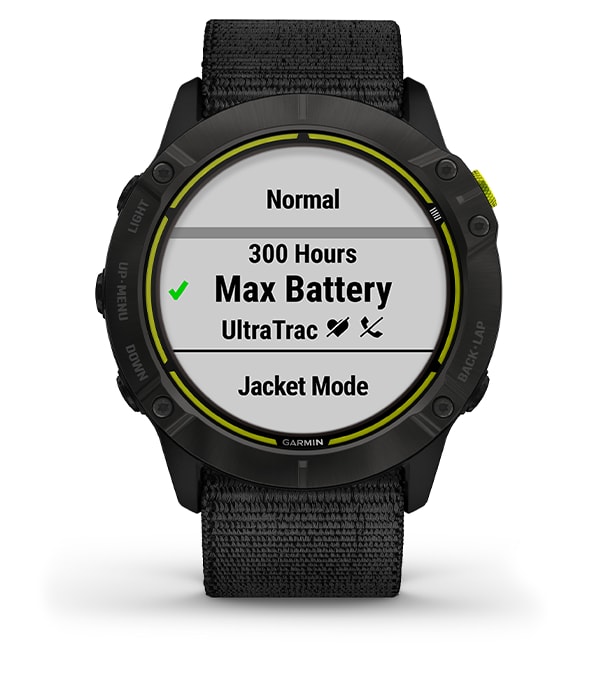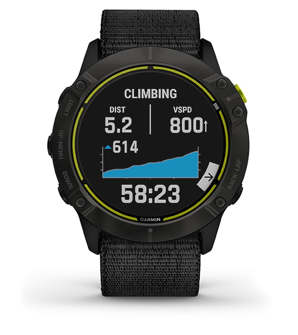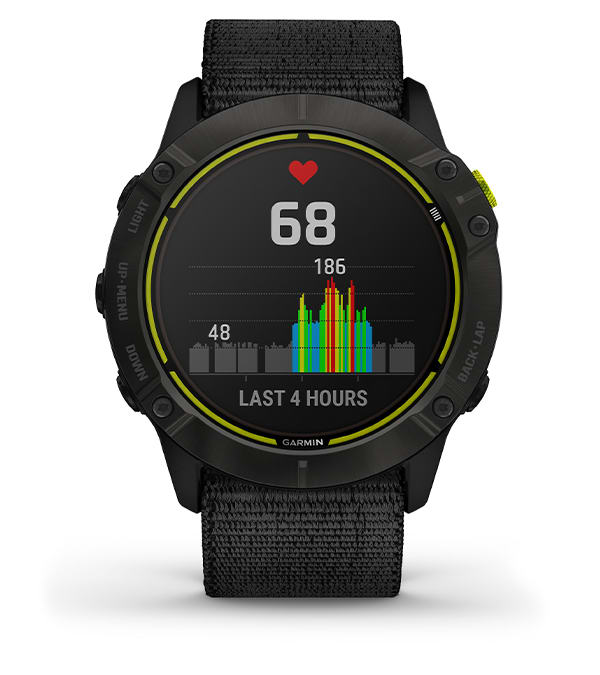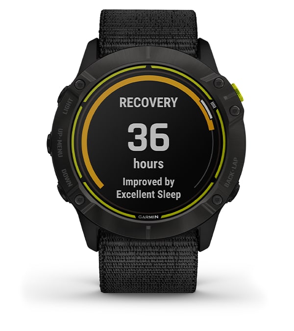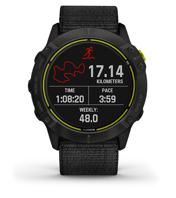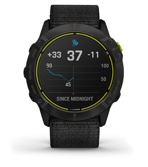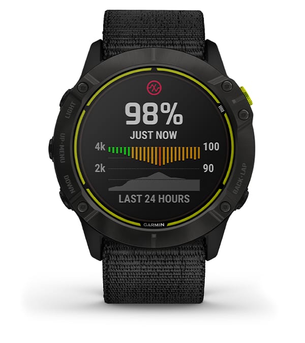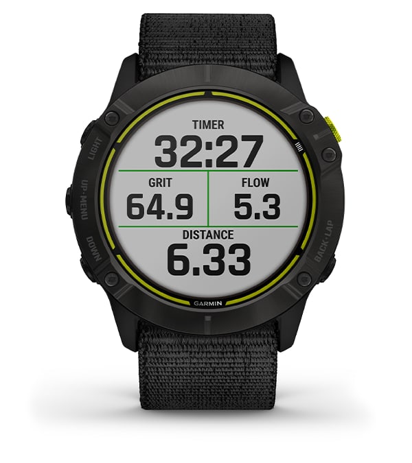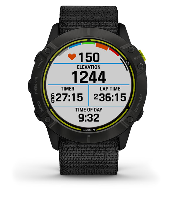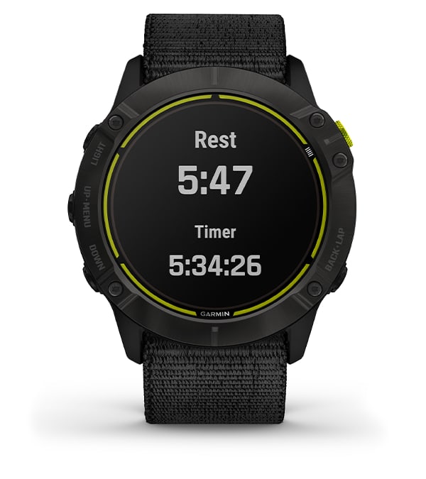 Az Enduro mindig bekapcsolt, 1,4 hüvelykes, napfényhez optimalizált kijelzővel rendelkezik, amely könnyű leolvasást biztosít, még mozgás közben is. Tele van a legjobb edzési funkcióinkkal és egy ultrahatékony processzorral, amely lehetővé teszi, hogy a versenyre koncentrálj — ne az akkumulátor élettartamára.