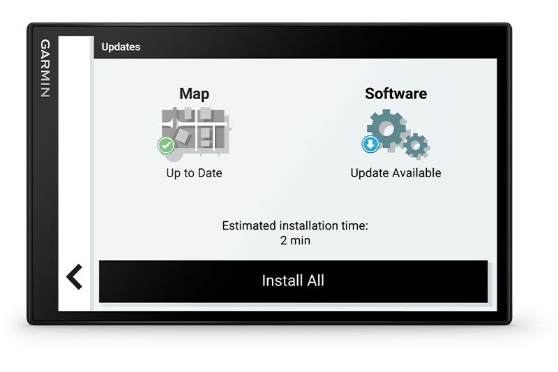 A beépített Wi‑Fi® kapcsolódás megkönnyíti a térképek és a szoftver naprakészen tartását számítógép használata nélkül. A képernyőn megjelenő jelzések mutatják, amikor új frissítések érhetők el.