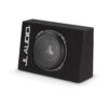 Fekete, kiváló minőségű autós szőnyegborítás található az elülső homloklapon, rajta ezüst hímzéssel JL AUDIO felirat. A mélynyomó védelmére acél hálós rács tartozék.