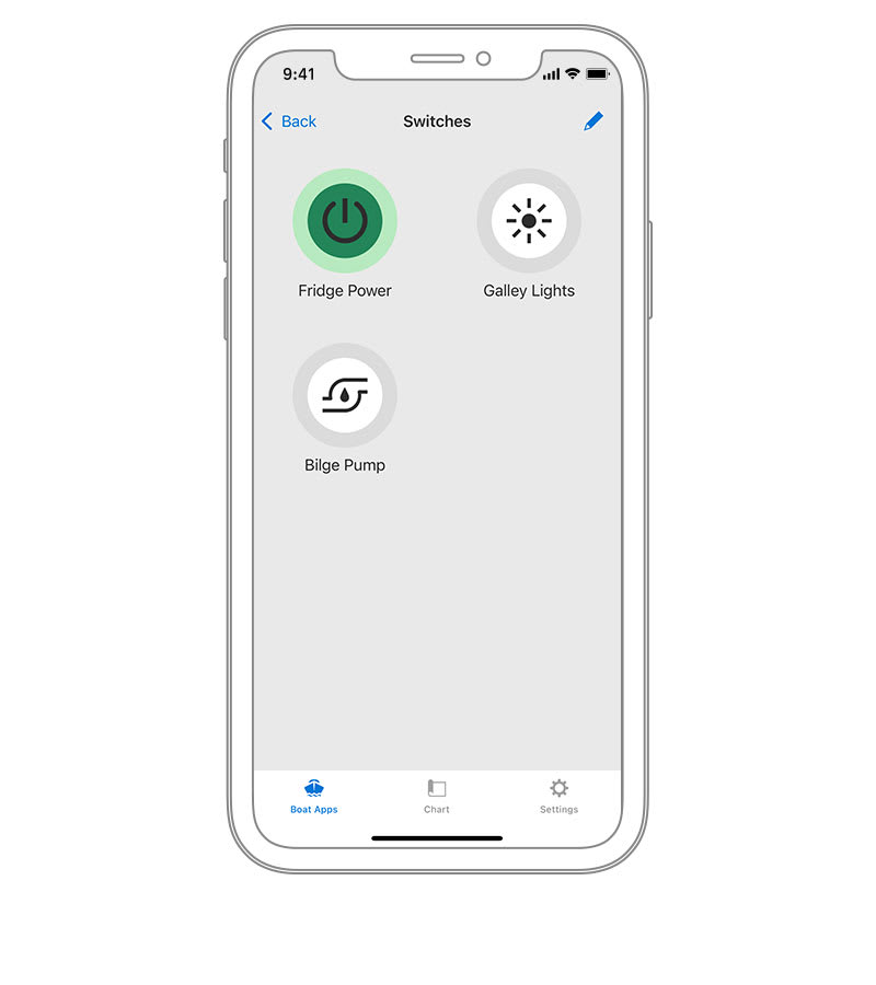 Vedd át a hajód irányítását. Távolról vezérelhetsz közvetlenül az OnDeck Hubról és az ActiveCaptain alkalmazásból akár öt relékapcsolót kritikus fedélzeti rendszerekhez, például akkumulátortöltőkhöz, jégkészítőkhöz és más berendezésekhez. Emellett annyi kapcsolót vezérelhetsz, amennyire szükséged van NMEA 2000 pillanatnyi vagy reteszelő kapcsoló támogatással EmpirBus digitális kapcsoláson vagy más harmadik fél interfészeken keresztül.