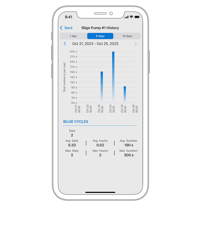 Kapj frissítéseket1 a hajód akkumulátorállapotáról, a fenékszivattyú működéséről, a parti tápellátásról, a hőmérséklet-változásokról és még sok másról. Állíts be riasztásértesítéseket az ActiveCaptain alkalmazásban.