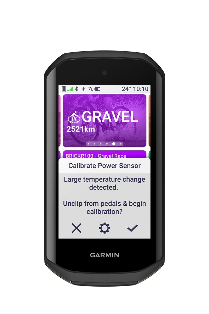 A Pedal IQ intelligens kalibrációs funkció figyelmeztet, amikor kalibrálni kell, több tényező alapján, például a legutóbbi kalibráció óta bekövetkezett hőmérséklet-változások esetén, ha párosítva van kompatibilis Garmin-készülékekkel.