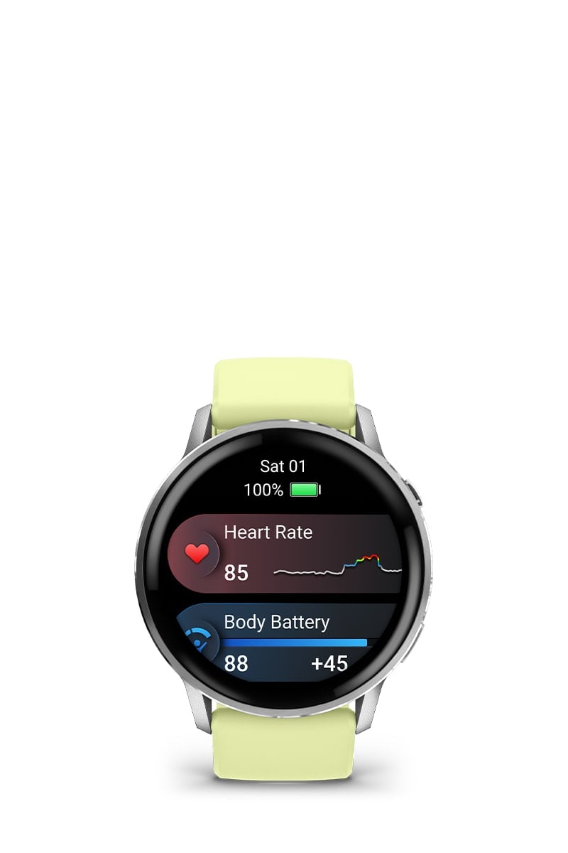 Tegyen lépéseket egy egészségesebb életmód felé kiterjedt egészségfigyelő funkciókkal, mint például a Body Battery™ energiaszint-figyelés, stressz, Pulzusoximéter1 és női egészségkövetés — beleértve a múltbeli ovuláció becsléseket2 — és még sok más3.