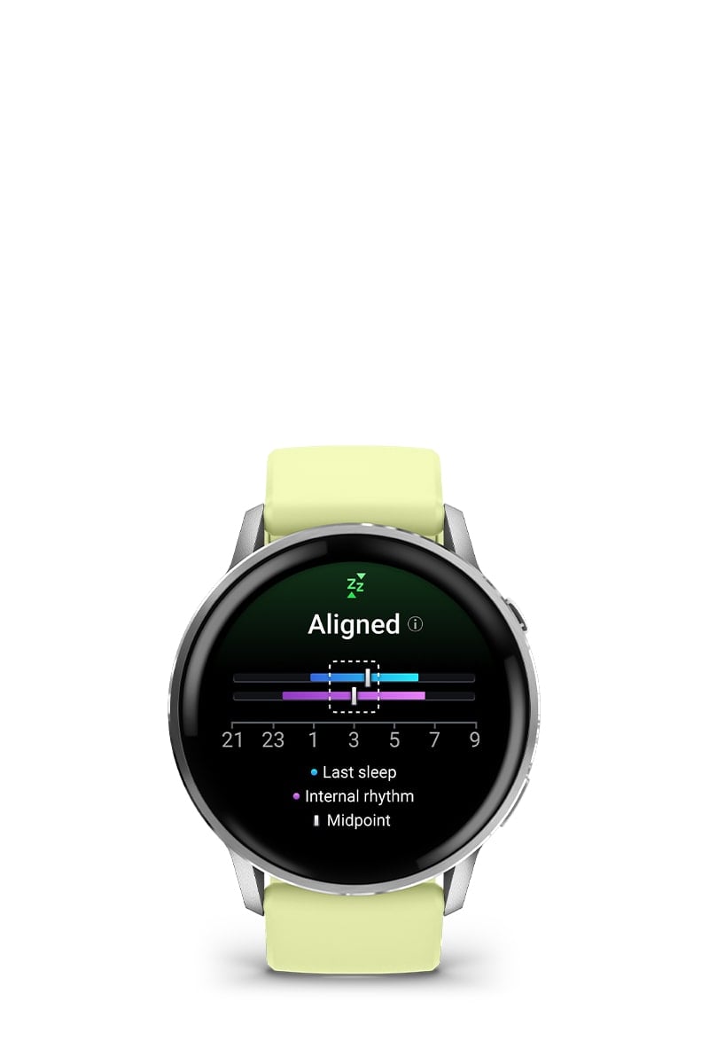 Kapj alvásértékelést és személyre szabott tanácsadást arról, mennyi alvásra van szükséged és hogyan javíthatsz rajta. Kövesd nyomon az alvás különböző szakaszait és szundikálásokat — és nézd meg a kulcsfontosságú mutatókat, mint például a HRV állapot és a bőrhőmérséklet3, hogy jobban megértsd egészségedet. Plusz, az alvás összehangolási funkcióval lásd, mennyire vagy összhangban a cirkadián ritmusoddal, és az alvásod következetességét.