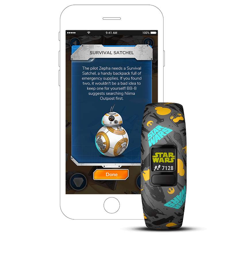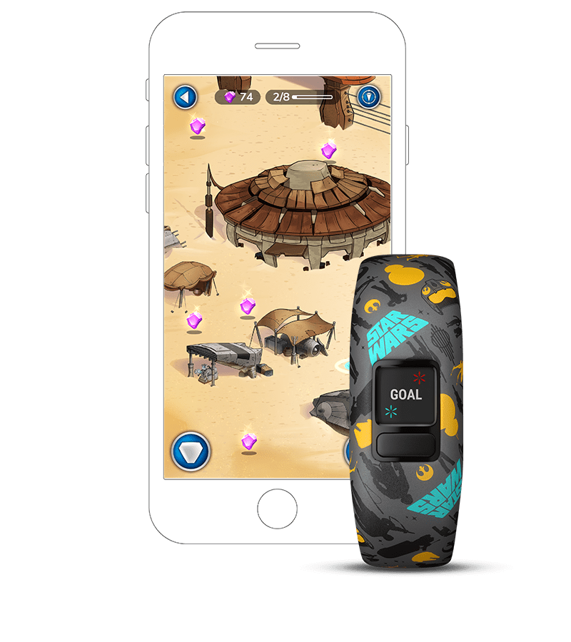 vívofit jr. 2 nem csupán egy gyerekeknek szánt aktivitásmérő1. Interaktív élmény, ahol az aktivitás galaktikus Star Wars alkalmazásbeli kalandokat nyit meg.