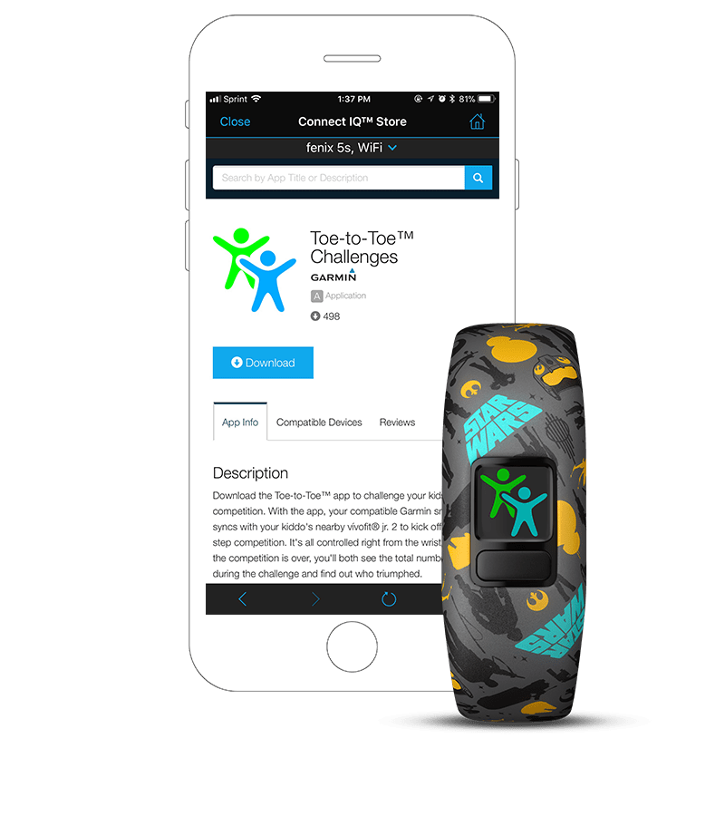 A Toe-to-Toe™ lépéskihívásokkal a gyerekek szinkronizálhatnak közeli barátokkal, hogy időre menő lépésversenyekben versenyezzenek. A szülők is bekapcsolódhatnak a mókába a Toe-to-Toe alkalmazással.